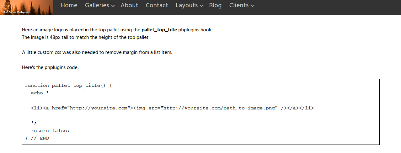 If you’re using the Top Pallet in your page template for your site title masthead but instead of a text title you want an image logo, this post is for you. First, be sure to set up your page template to use the Top Pallet Title and disable the Primary Masthead. In the Top Pallet […]